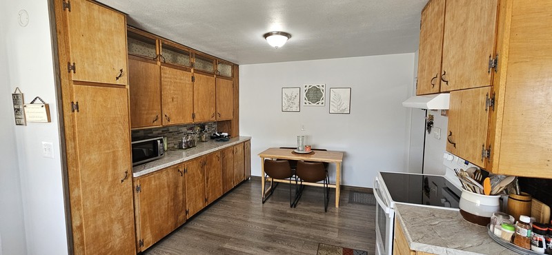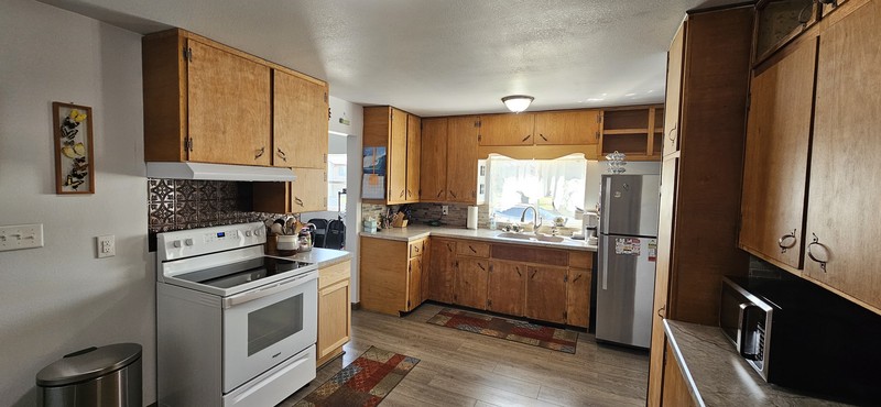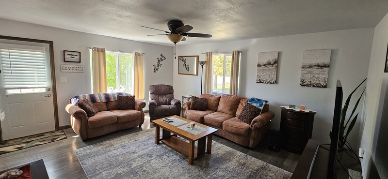 Adorable home in great location! Updated bath with all drywall, 3 coats waterproofing, new tile and bathtub in past 3 years, new flooring, paint, appliances. Main level laundry room with space for freezer or shelves. Kitchen updates within past 3 years, appliances, faucet, counter tops, backsplash, GFIC. NEW gas HVAC system installed by Erthum’s 2021, Large attached insulated and heated garage with a new overhead door 2020. NEW front steps and railing 2023. Storage shed, patio, extra large parking space in addition to 2 car garage. Nice yard. Great first time home or investment property.