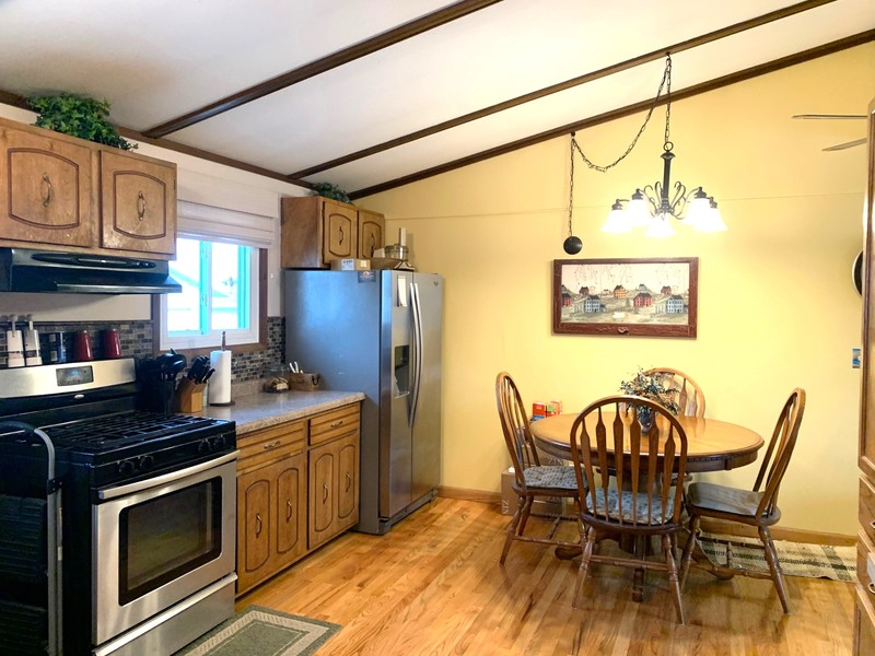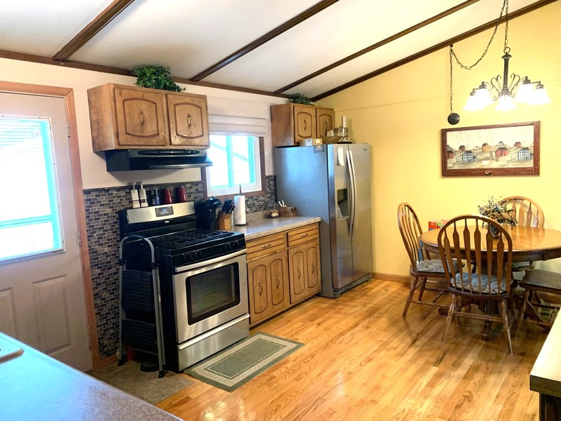 Nice, clean, cozy home with vaulted ceilings in a desirable location. Bath has a newer walk-in shower, kitchen. Dining area features real hard wood flooring. Full basement with 2 non-conforming bedrooms, family room, large storage area and laundry area. Newer windows and vinyl siding. Underground sprinklers, heated 24x28 detached garage. Energy efficient! Ring camera, tv, garage freezer, and lawn ornaments do not stay.