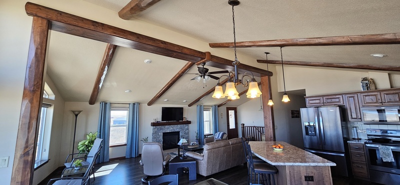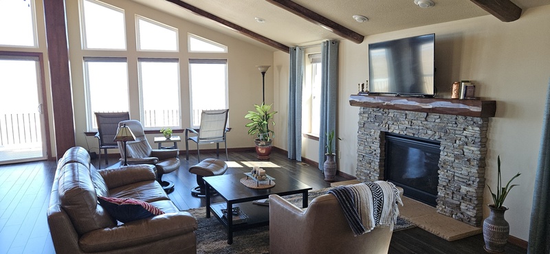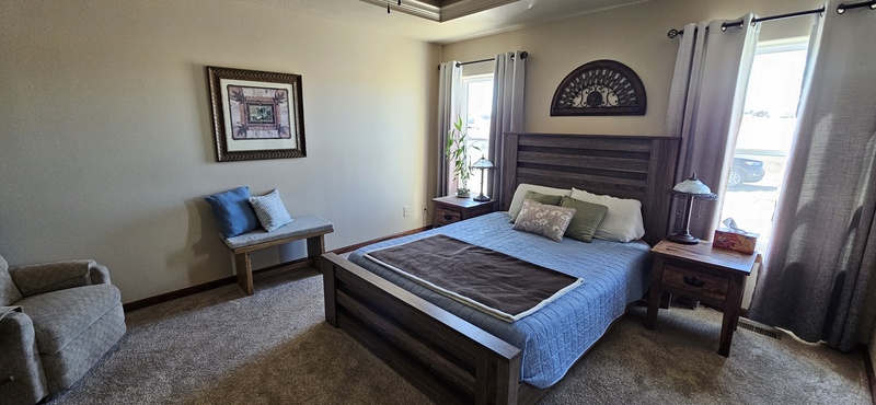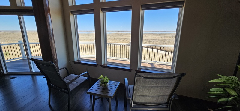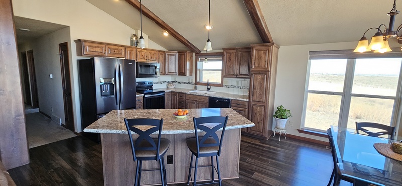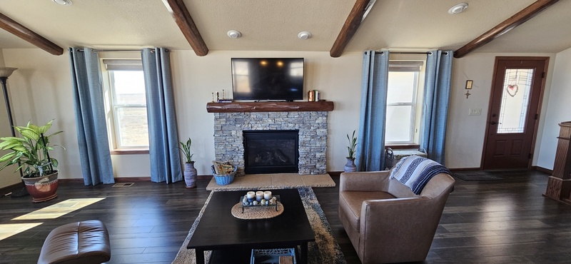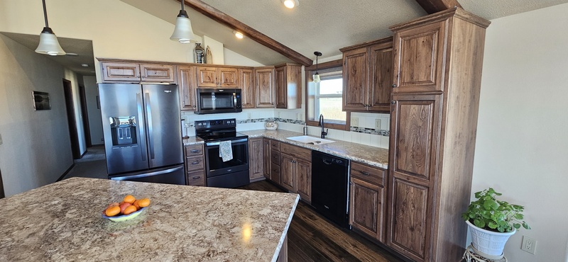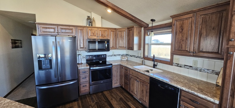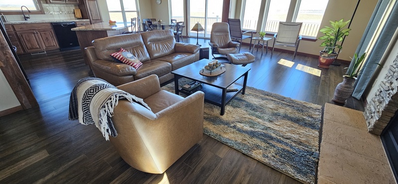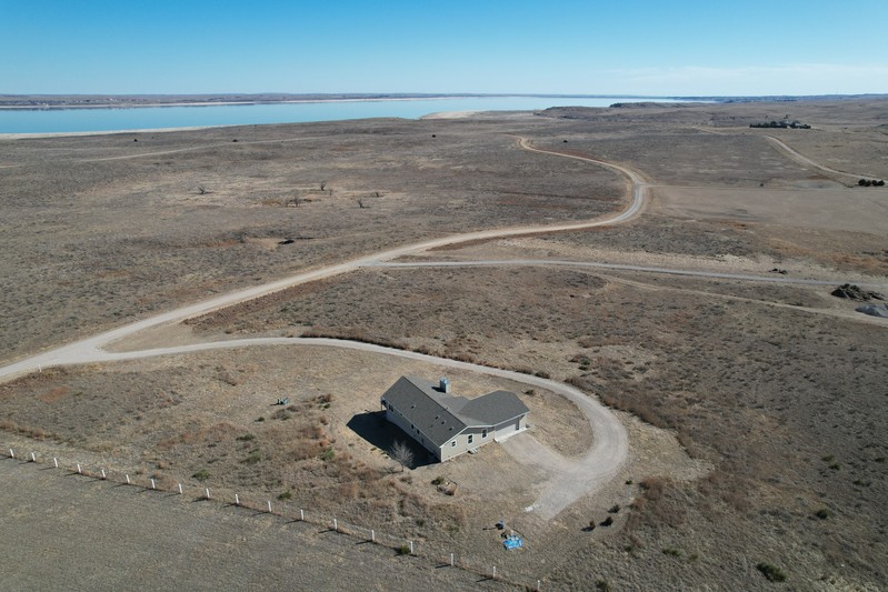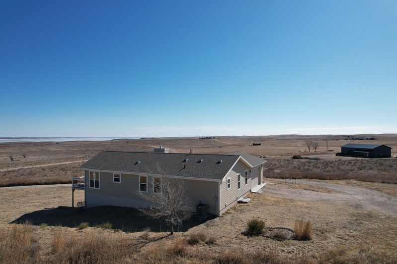 This gorgeous home offers beautiful lake McConaughy views and the tranquility of the Nebraska Sandhills from the front deck or covered patio below. Ride your bike or take a nice walk in the peaceful surroundings. Plenty of space on this large acreage for extra outbuilding. Many beautiful details in home, including tray ceiling, fireplace, large windows, large, open kitchen and living area. Walk-out basement features large bright living spaces, space for 2nd kitchen. Meticulously maintained and so clean! Beautiful home!
